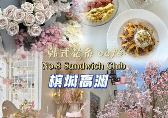 Source: @一玄 马来西亚2025韩式花系咖啡厅打卡点:高渊No.8 Sandwich Club No.8 Sandwich Club 是隐藏在槟城高渊住宅区的小众咖啡厅。外观看似低调,走进去却是充满韩式花系风格的空间。整间店围绕粉色、白色、花艺装饰设计,打造“春季花园”感。 季节主题会不定期更换,目前布置以“SPRING 春”为主,拍照区丰富,适合情侣、闺蜜打卡。男女老少都适合,店员亲切,气氛温馨。 No.8 Sandwich Club人气推荐菜单与价格(马来西亚2025参考) 主食推荐: 🦀 King Crab Mentaiko with Onsen Egg Rice(RM17.90) 🍳 Luncheon Meat with Scramble Egg Rice(RM11.90) 甜品与饮品推荐:价格亲民,颜值在线 蛋糕: 🍰 美颜桃胶红枣泥蛋糕(RM15.90) 饮品: 🌸 Rose Lychee Tea(RM8.90) 🫐 “心事无人知” 黑加仑气泡饮(RM6.90) No.8 Sandwich Club 详细地址与营业时间 📍地址:8, Lorong Fajar 1,