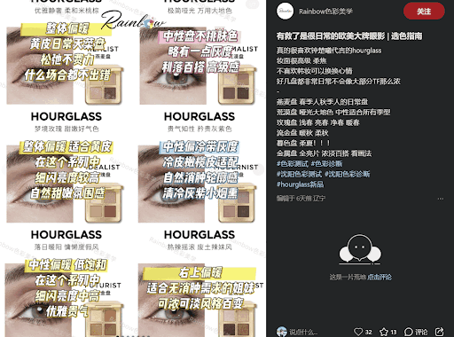 📌 Source:@Rainbow色彩美学 内容照片来源: @端庄田叔 Hourglass眼影盘系列介绍:日常耐看不挑肤 Hourglass 是近几年崛起的欧美高端彩妆品牌,以高质感眼影盘受到广泛喜爱。相比其他欧美品牌,它的粉质柔和细腻、显色度适中,更适合亚洲女生日常通勤或淡妆使用。 根据肤色和色彩季型,挑对适合你的Hourglass眼影盘 燕麦盘(柔和米桃棕)——黄皮首选,万能不出错 荒漠盘(哑光大地)——冷暖肤色皆宜,高级百搭 玫瑰盘(梦境玫瑰)——适合浅春、亮春、净春 流金盘(灰棕金属)——冷皮必入,秋冬氛围感拉满 暮色盘(橘调暖棕)——低饱和黄皮友好 金属盘(高亮闪片)——玩妆专用,百搭全能 马来西亚2025美妆趋势下,如何挑选日常眼影盘? 关注肤色冷暖的基础判断 掌握“色彩测试/色彩诊断”理念 选择质地柔和、亮片适度的产品更友好 📌 Hashtags(优化&补充,共≥10个) #Malaysia2025 #Hourglass眼影盘 #马来西亚美妆 #色彩测试 #色彩诊断 #冷暖肤色 #2025彩妆推荐 #2026眼影流行 #眼影盘推荐 #欧美眼影 #自然妆感 #beautytrendMalaysia ✅ 英文 Summary Best Hourglass Eyeshadow Picks for Malaysia 2025 Looking for an everyday-friendly eyeshadow palette in Malaysia