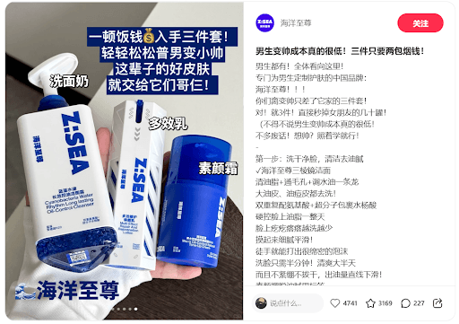 📌 Credit:@海洋至尊(小红书) 對於很多男生來說,護膚總是感覺複雜又費錢,其實只需要三件套就能輕鬆搞定!博主 @海洋至尊 分享了國貨品牌海洋至尊的護膚三步法,從清潔、養護到自然亮膚,一步到位,價格親民又實用,讓“懶人”也能變帥。 👣 护肤三步法: 1️⃣ 清洁去油腻:海洋至尊三棱镜洁面 2️⃣ 精简护肤:海洋至尊多效乳 3️⃣ 伪素颜提亮:海洋至尊素颜霜 💬 用户热评:实测效果不错! “@balls我说你:用了两瓶了,有啥问题尽管问,包回复的!”“@黎明至暗时刻:怎么样?”“@balls我说你:我觉得挺好用的,洗完不紧绷,而且挺清爽的,控油效果也不错。”“@黎明至暗时刻:去黑头的效果怎么样啊?” ——“@balls我说你 回复:我去年开始用的,现在黑头确实少了。”  這篇護膚分享筆記讓人看到男生護膚也可以很簡單。三件套搭配用法直接明了,搭配使用者真實反饋,降低了入門門檻,尤其對學生黨或初入職場的男生而言,這是一個高效又平價的選項。 This skincare post offers an approachable and budget-friendly solution for men who want to start taking care of their skin. With only three versatile products and honest user feedback, it breaks