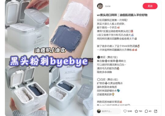 Credit: Jovie(小红书) 有没有人是这样的 👉T区出油长闭口、鼻头黑头越来越多,U区却干到卡粉、毛孔明显,一敷清洁面膜全脸又太干、刺激泛红…… 💡后来才发现:分区护理才是根本解法! 皮肤状况不同区域要对症下药,不然很容易护肤越护越糟! 🧼 今天要分享的神物就是: 🌿 RNW DER. CLEAR DUO CLAY MASK|双色清洁泥膜! 一个罐子 = 一次拥有两种清洁配方,简直是懒人&油痘肌福音!尤其适合 T区毛孔粗大 + U区干燥敏感 的混油/油痘肌党。 ⚫️ 黑泥(敷T区) 适合:鼻头 / 额头 / 下巴等出油旺盛区域 关键成分: 功效: ✅ 深层吸附油脂✅ 减少黑头白头闭口✅ 改善T区暗沉粗糙感 ⚪️ 白泥(敷U区) 适合:脸颊 / 法令纹区 / 下巴两侧干燥区域 关键成分: 功效: ✅ 温和去除角质✅ 提亮肤色、减少卡粉✅ 保湿锁水,干皮也能安心用! 💦 使用方式